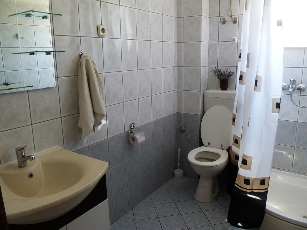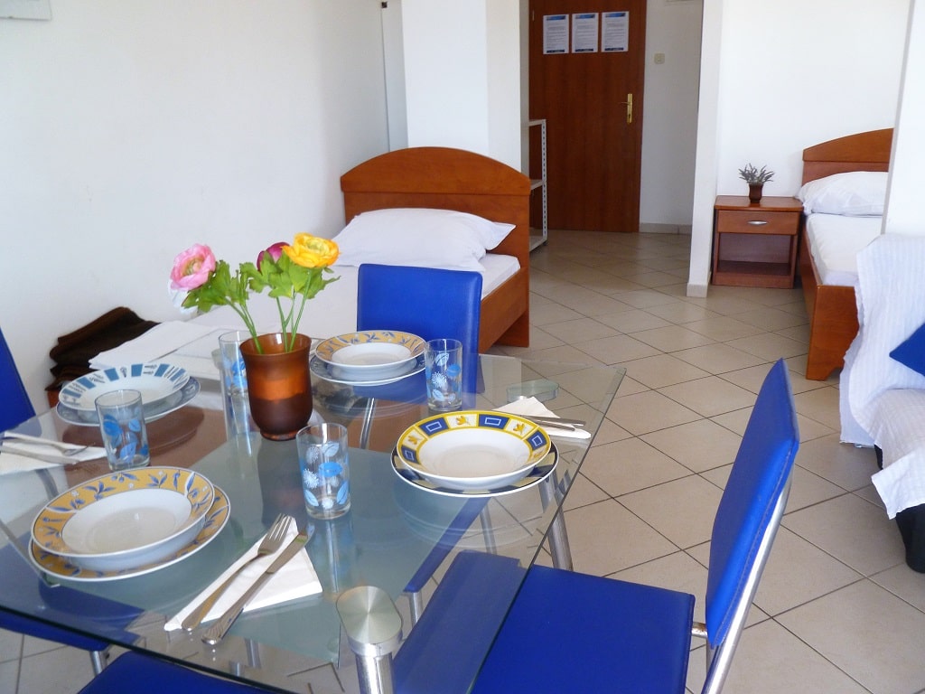 tudio apartment 3 (3+1) is on 1st floor of Villa Maria and has 35 m2 + balcony (5m2) with beautiful sea view (south oriented). Studio apartment means everything is in one room - 35 m2 (1 double bed, 1 single bed and 1 couch), kitchen (with fridge and all dishes necessary for cooking) + bathroom with shower bath. Apartment has air condition, sat TV, and parking is secured (next to the house).