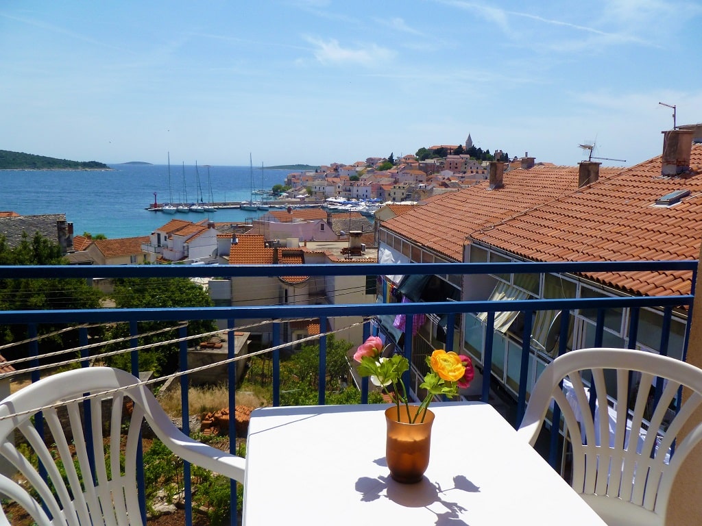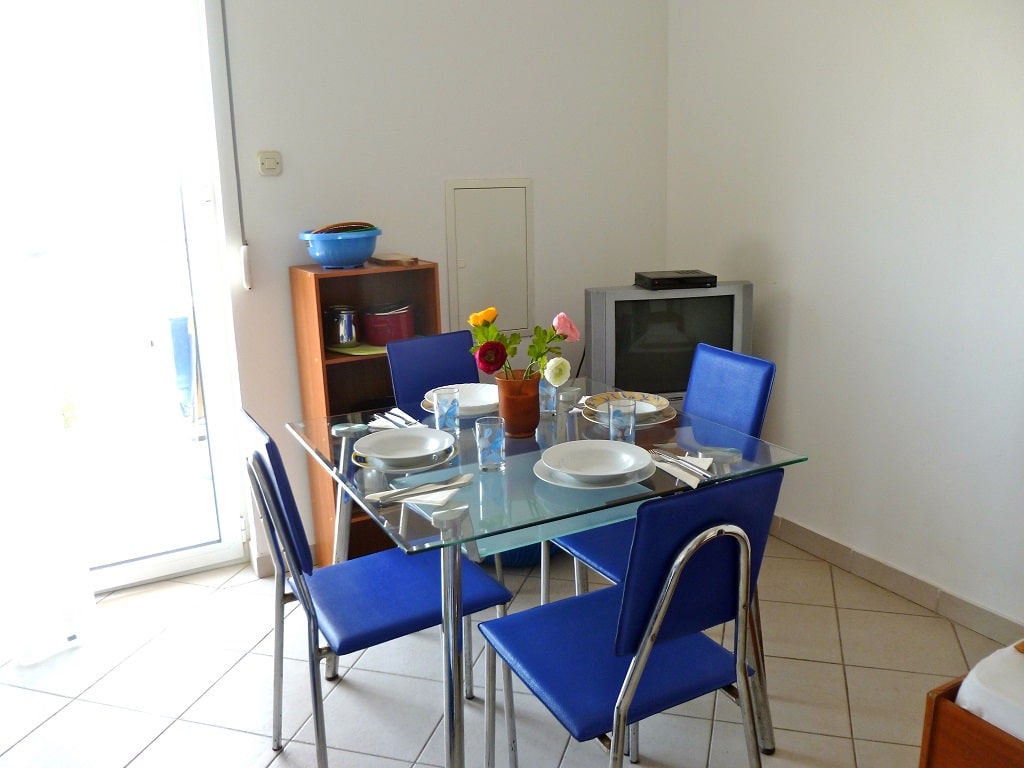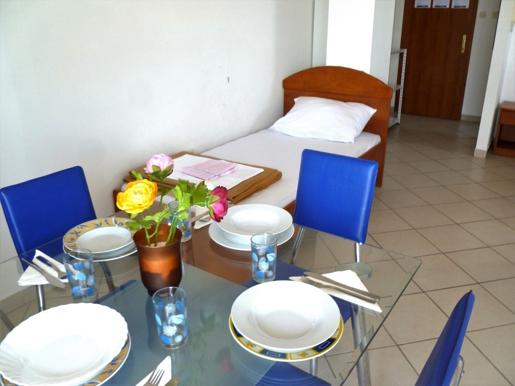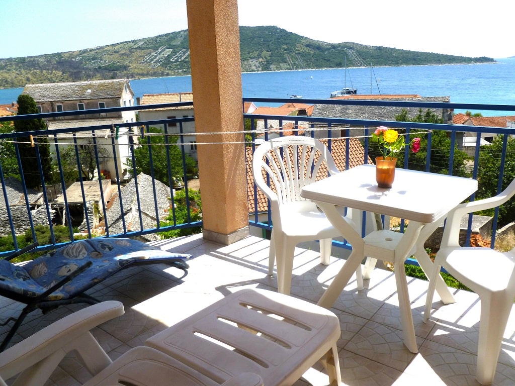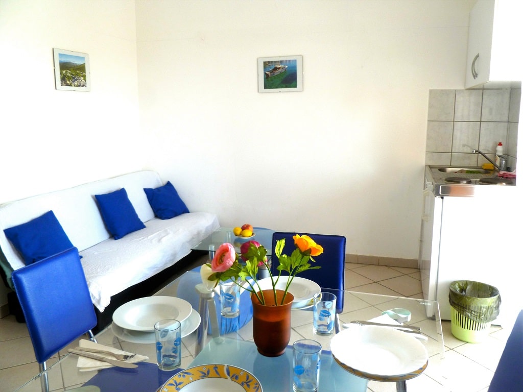 tudio apartment 7 (3+1) is on 2nd floor of Villa Maria and has 35 m2 + balcony (5m2) with beautiful sea view (south oriented). Studio apartment means everything is in one room - 35 m2 (1 double bed, 1 single bed and 1 couch), kitchen (with fridge and all dishes necessary for cooking) + bathroom with shower bath. Apartment has air condition, sat TV, and parking is secured (next to the house).