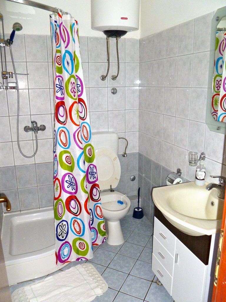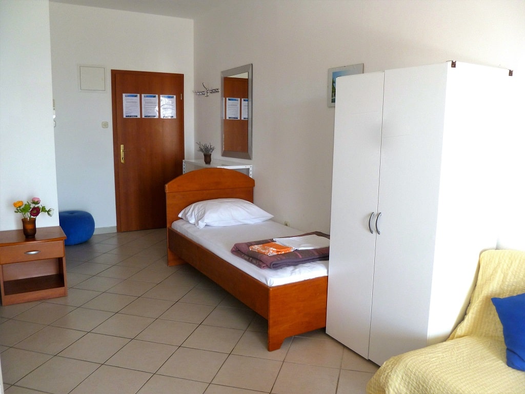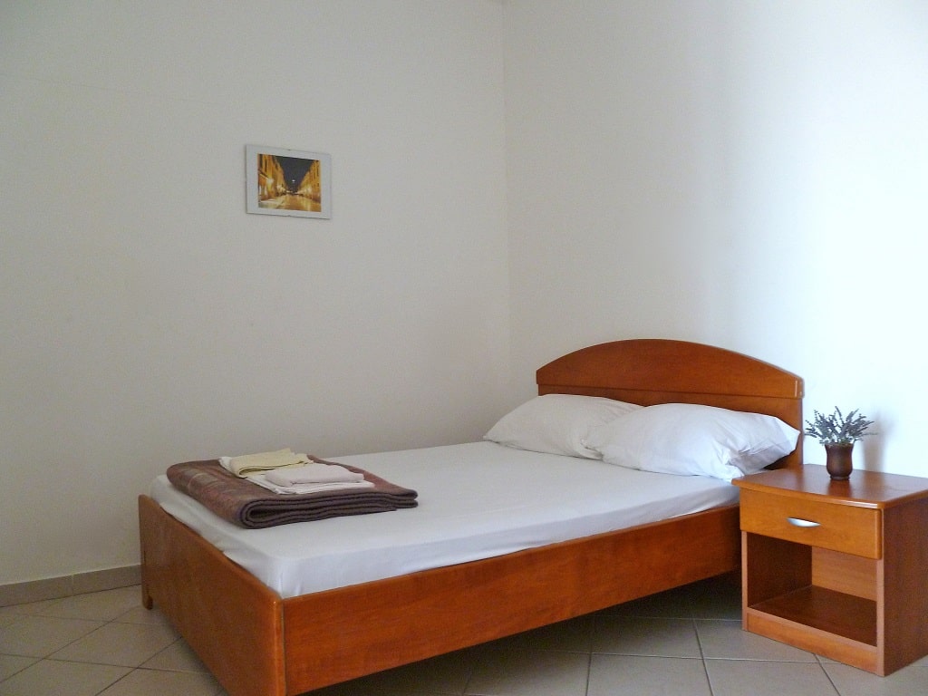 Studio apartman znači da se sve nalazi u jednoj prostoriji - 35 m2 (1 bračni krevet, 1 krevet za 1 osobu i 1 kauč), kuhinja (s frižiderom i posuđem za kuhanje) + kupaonica s tušem. Apartman ima klima uređaj, SAT TV, besplatni WiFi i osigurano parking mjesto (pored kuće).