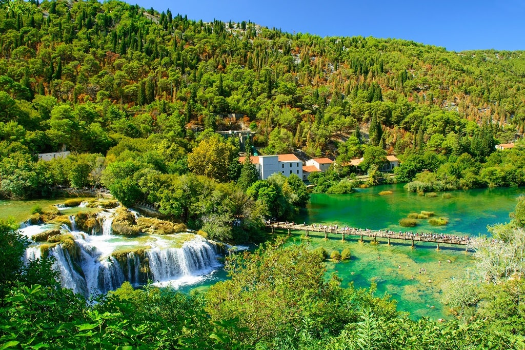 Krka to dziewicza czysta rzeka krasowa z 7 magicznymi wodospadami. Źródło rzeki Krka leży niedaleko Kninu, a na 2/3 jej długości biegnie przez piękne kaniony. Jest niezwykle bogaty w endemiczną florę i faunę, z 222 gatunkami ptaków. Na jeziorze Visovac między Roški slap i Skradinski buk znajduje się wyspa Visovac z klasztorem franciszkanów w idyllicznych ogrodach o długiej historii. Ciche jeziora i rzeki są idealne na kajaki i kajaki. W parku narodowym wolno pływać, więc weź swoje stroje kąpielowe i odświeżyć się w krystalicznie czystej rzece Krka! Polecamy wejść z pięknego miasteczka Skradin, które znajduje się w małym kanionie rzeki Krka i skąd można popłynąć łodzią do wodospadów, a po drodze cieszyć się nietkniętą przyrodą! Rejs łodzią jest wliczony w cenę biletu do Parku Narodowego.